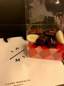 ➁歩いてギャルリー・サンチュベールへ行き、ショップに寄ります。(ピエールマルコリーニを買いました)これから電車に乗るのでブルージュまで移動する際のお供(おやつ)にします。