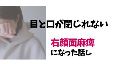 顔面神経麻痺とは顔の片側にある日突然、麻痺が起こりまばたきや口を閉じたりする事が出来なくなる病気です。私の場合は右側に起こりました。